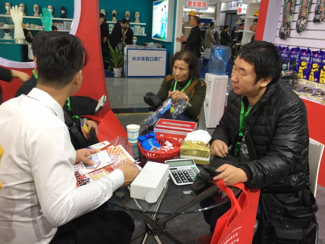 建德市朝美日化有限公司展位人头攒动,朝美代表们热情接待慕名前来了解朝美呼吸防护产品的采购商及经销商。